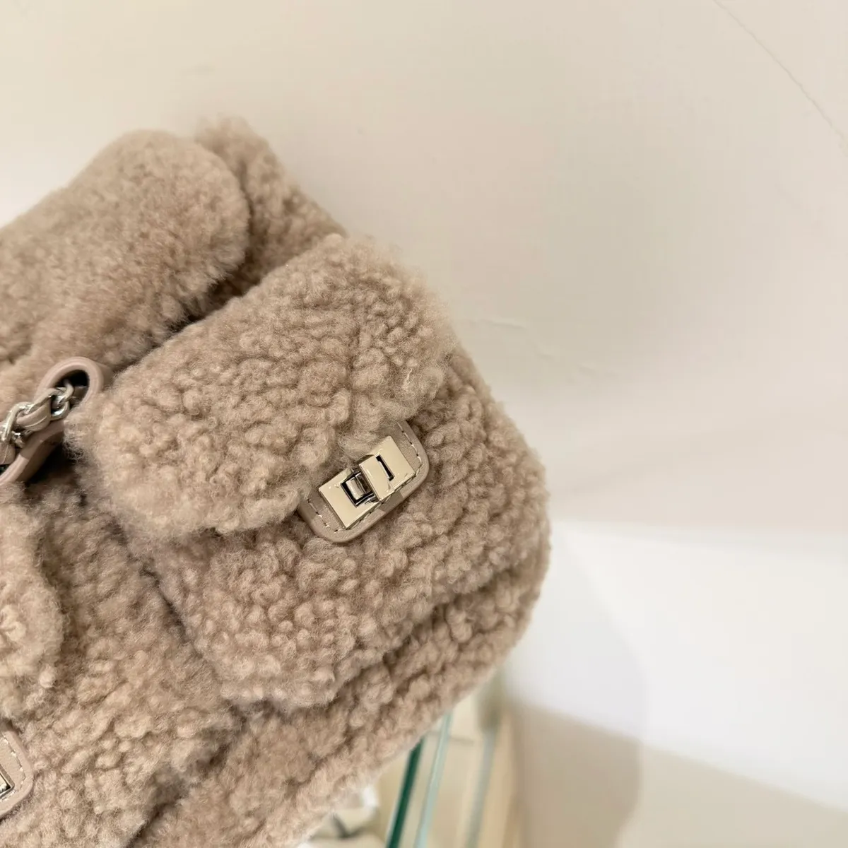 QQ毛真皮奶茶後背包