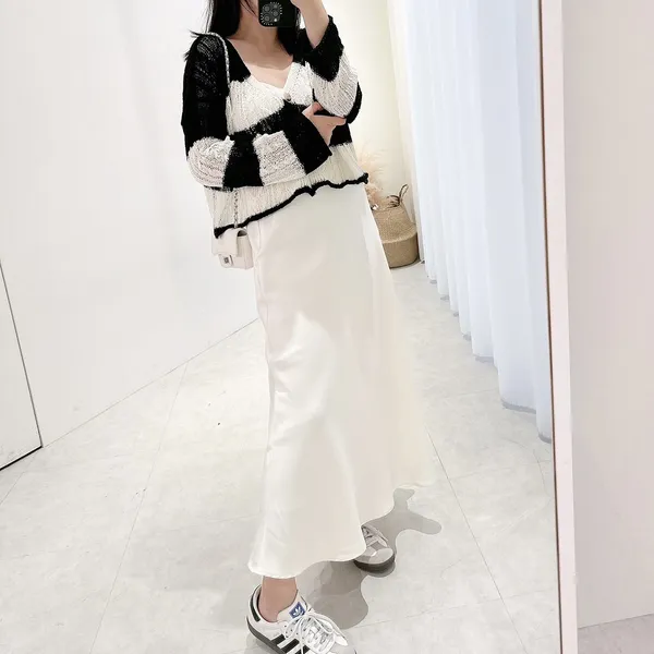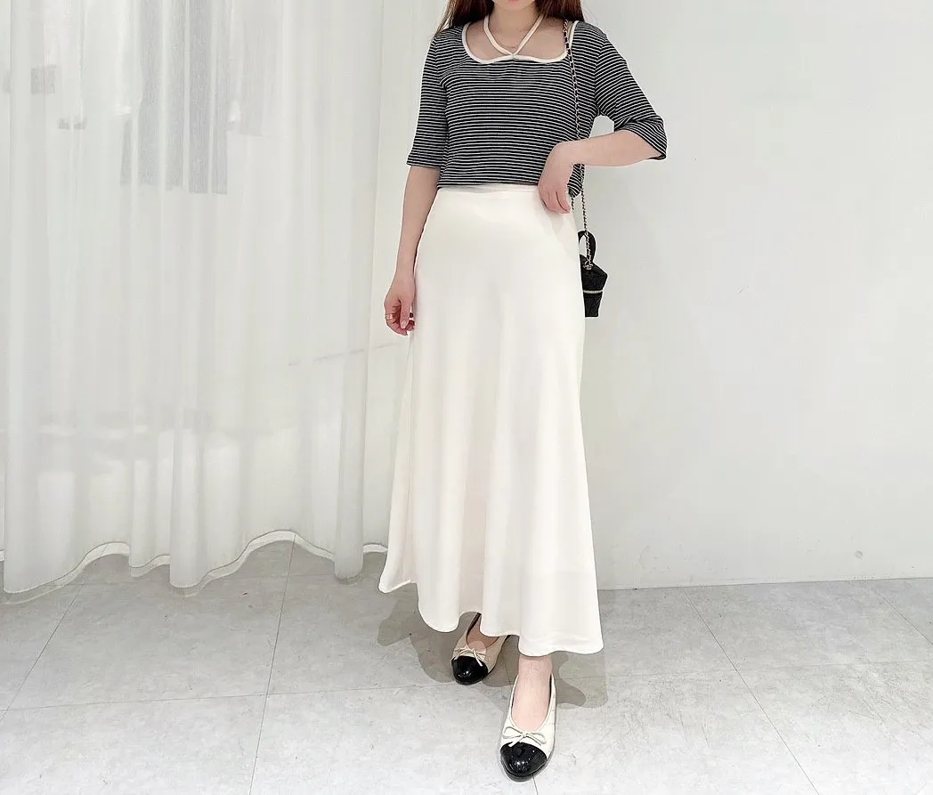 NEW 春夏新色珍珠白 同款版型一樣顯瘦的緞面長裙