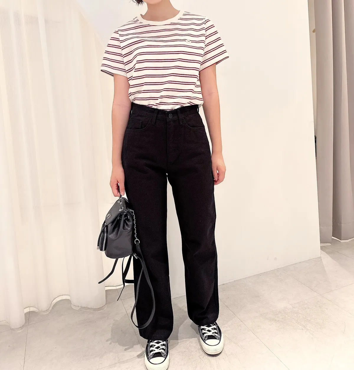 黑色配上同色黑釦整體搭配起來也好質感穿搭