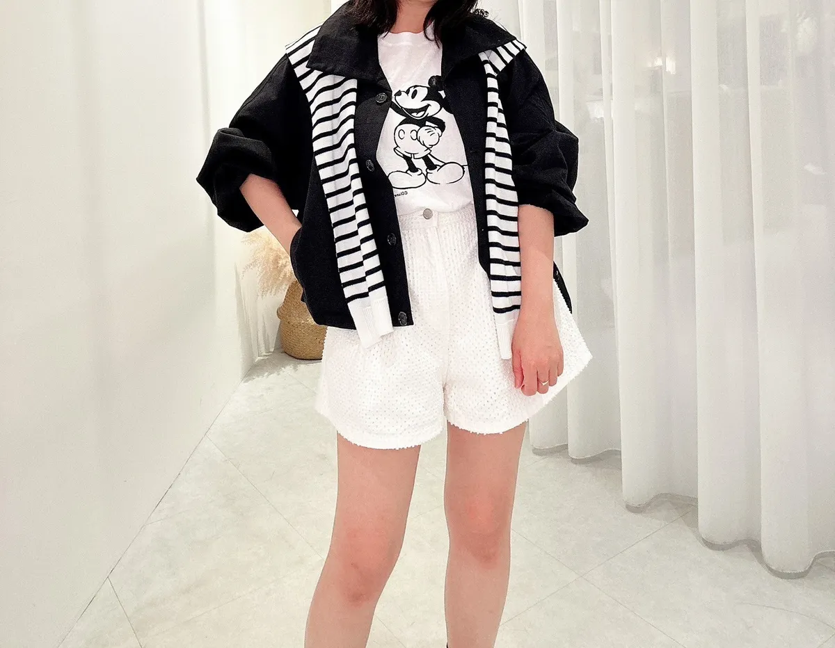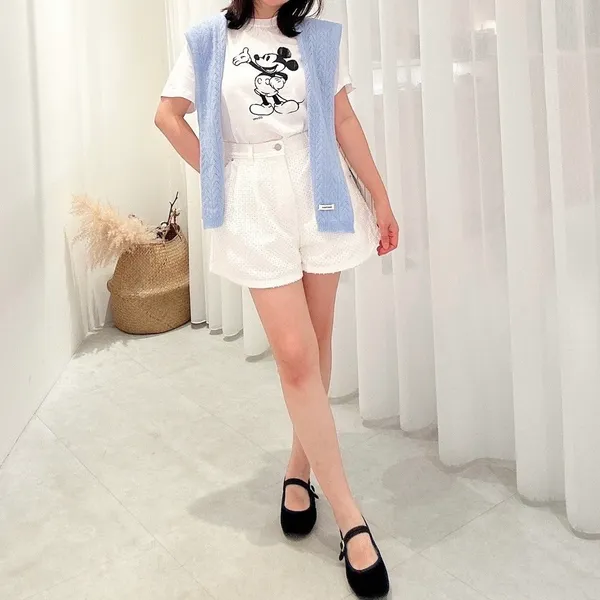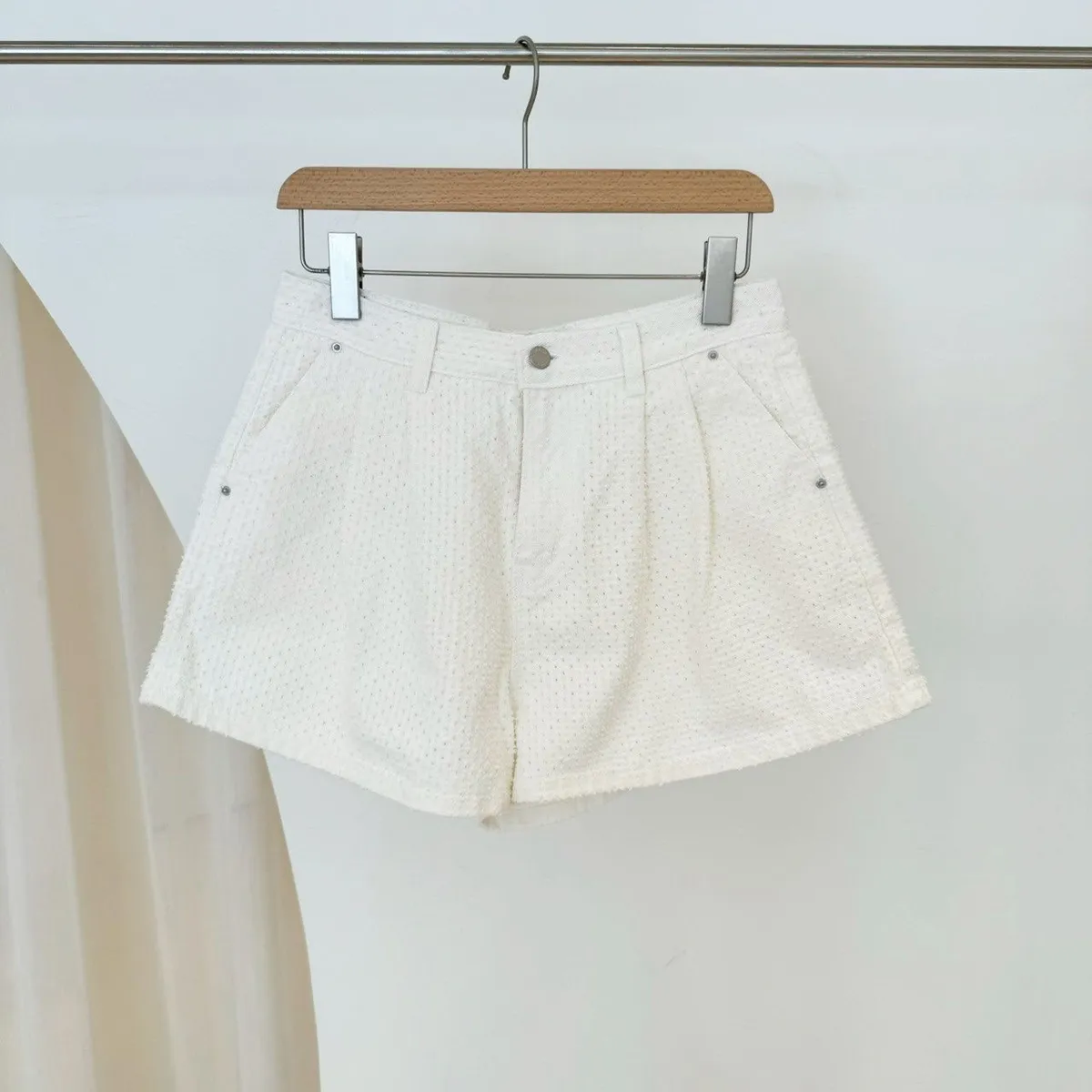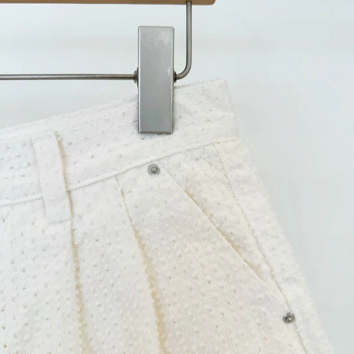 洞洞點壓摺奶白褲