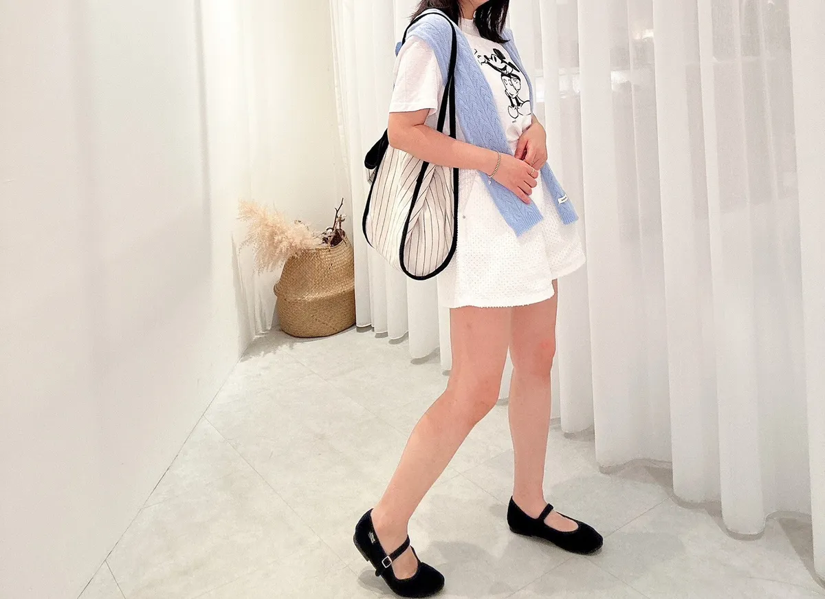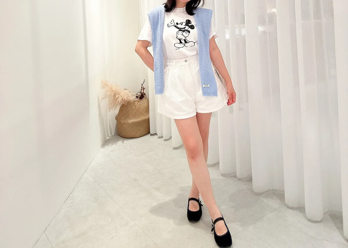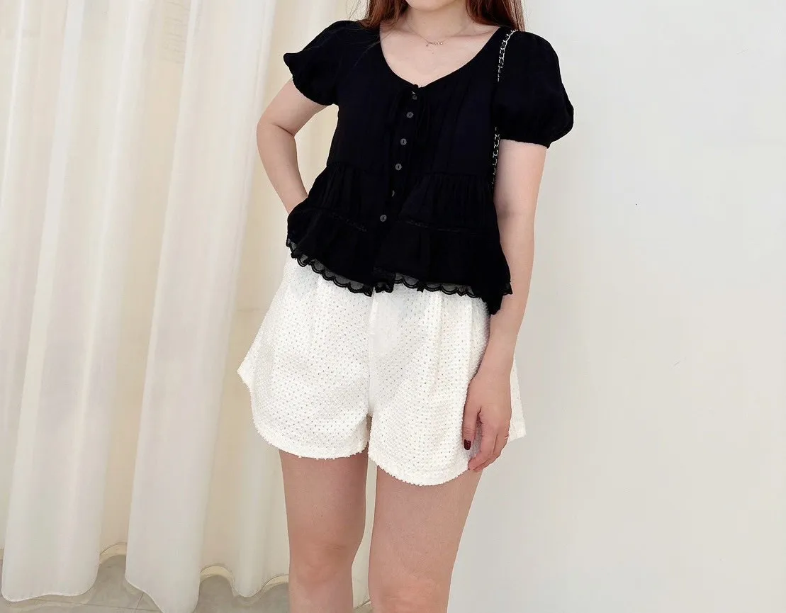 洞洞點壓摺奶白褲