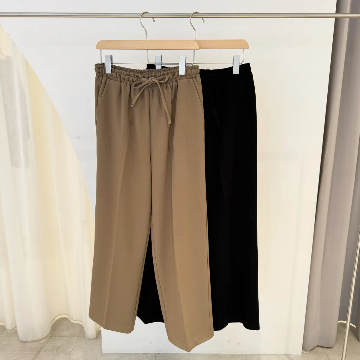 2色綁帶休閒寬褲