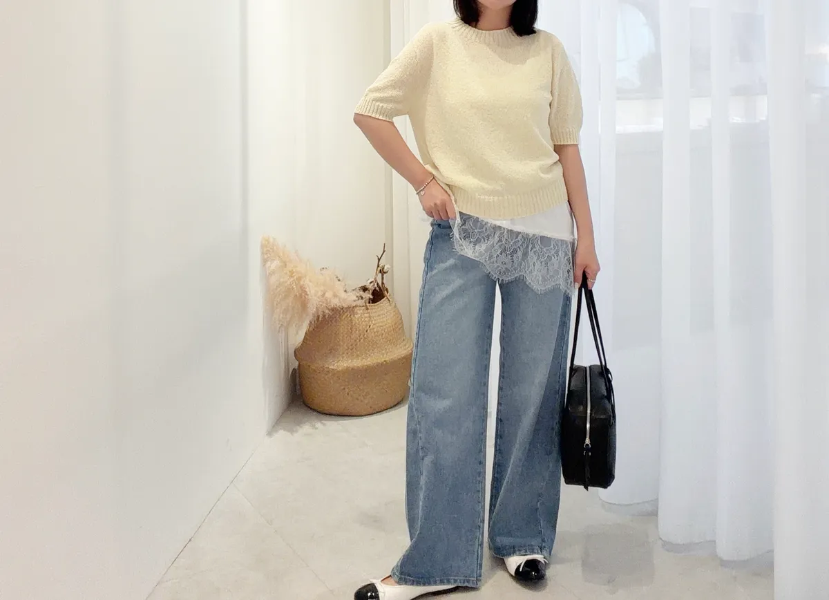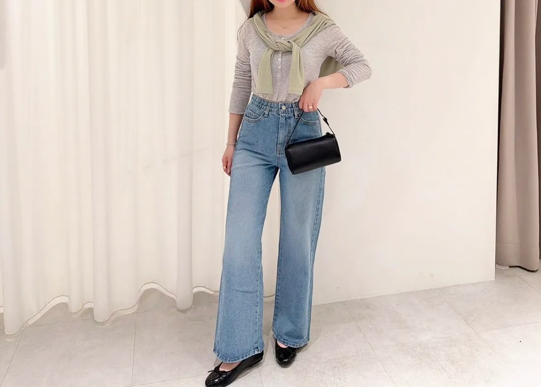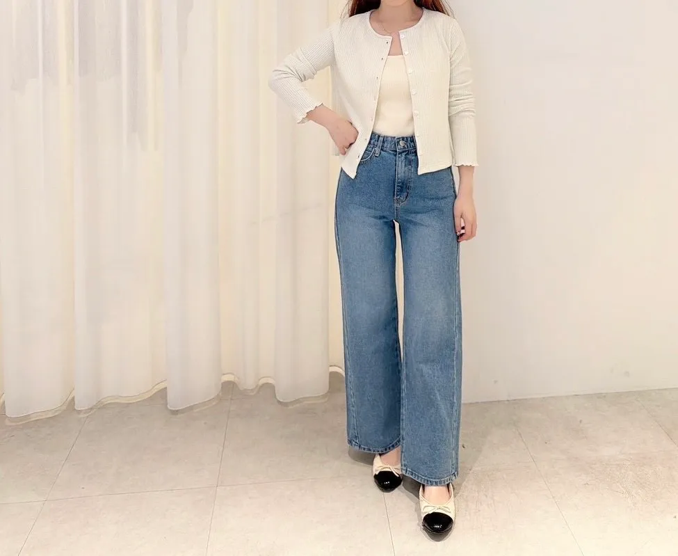 #2512側寬線直腿牛仔褲