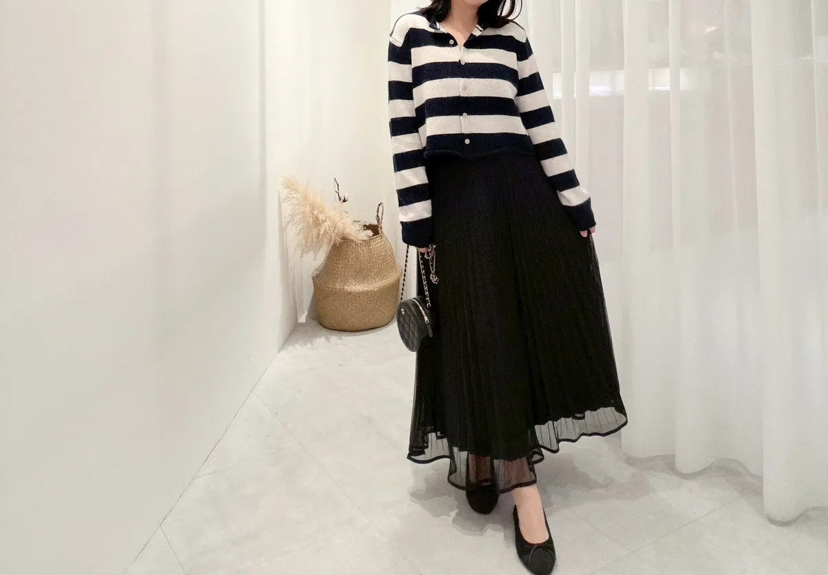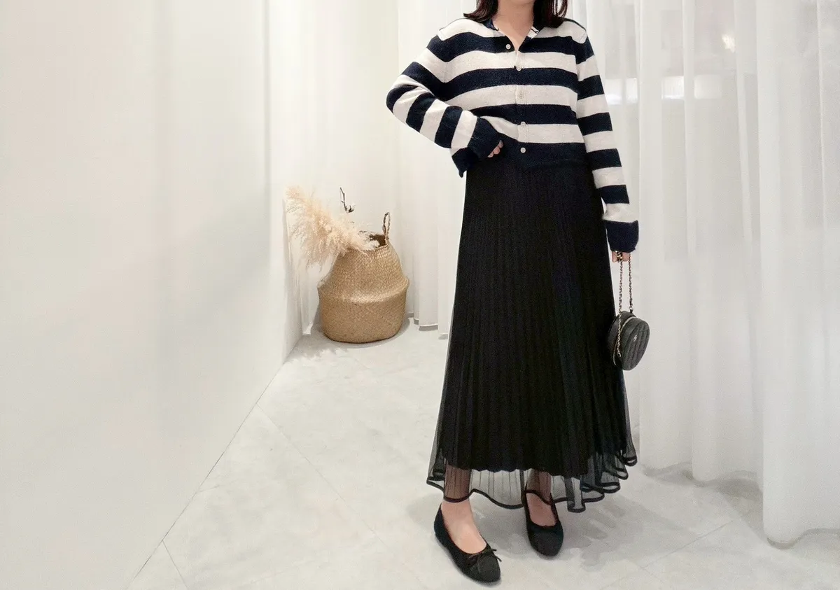 設計感細摺紗長裙
