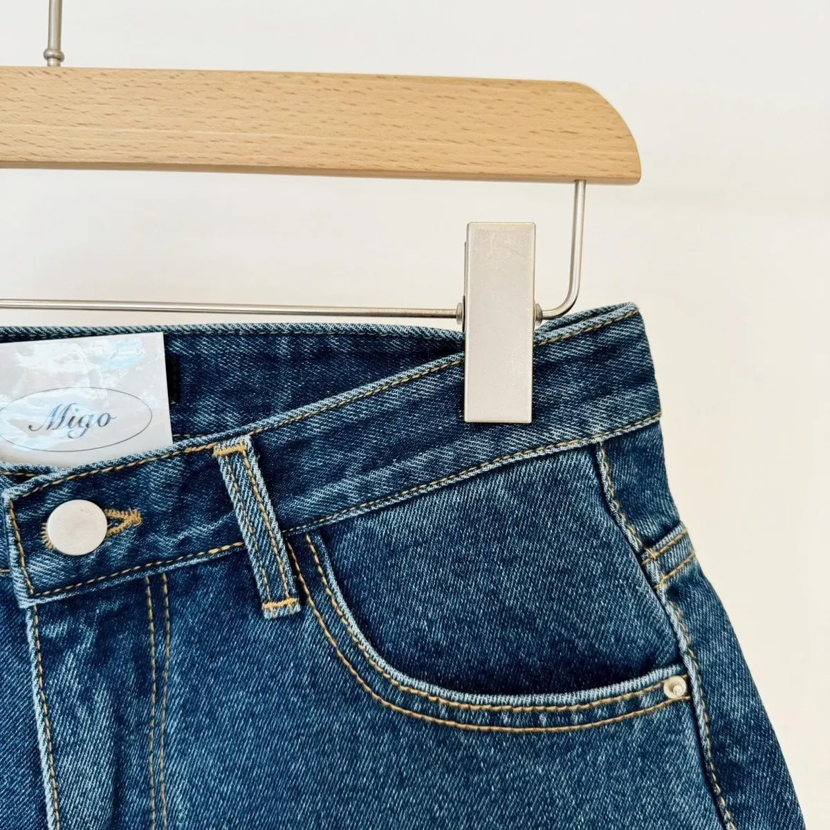 深藍牛仔口袋短褲