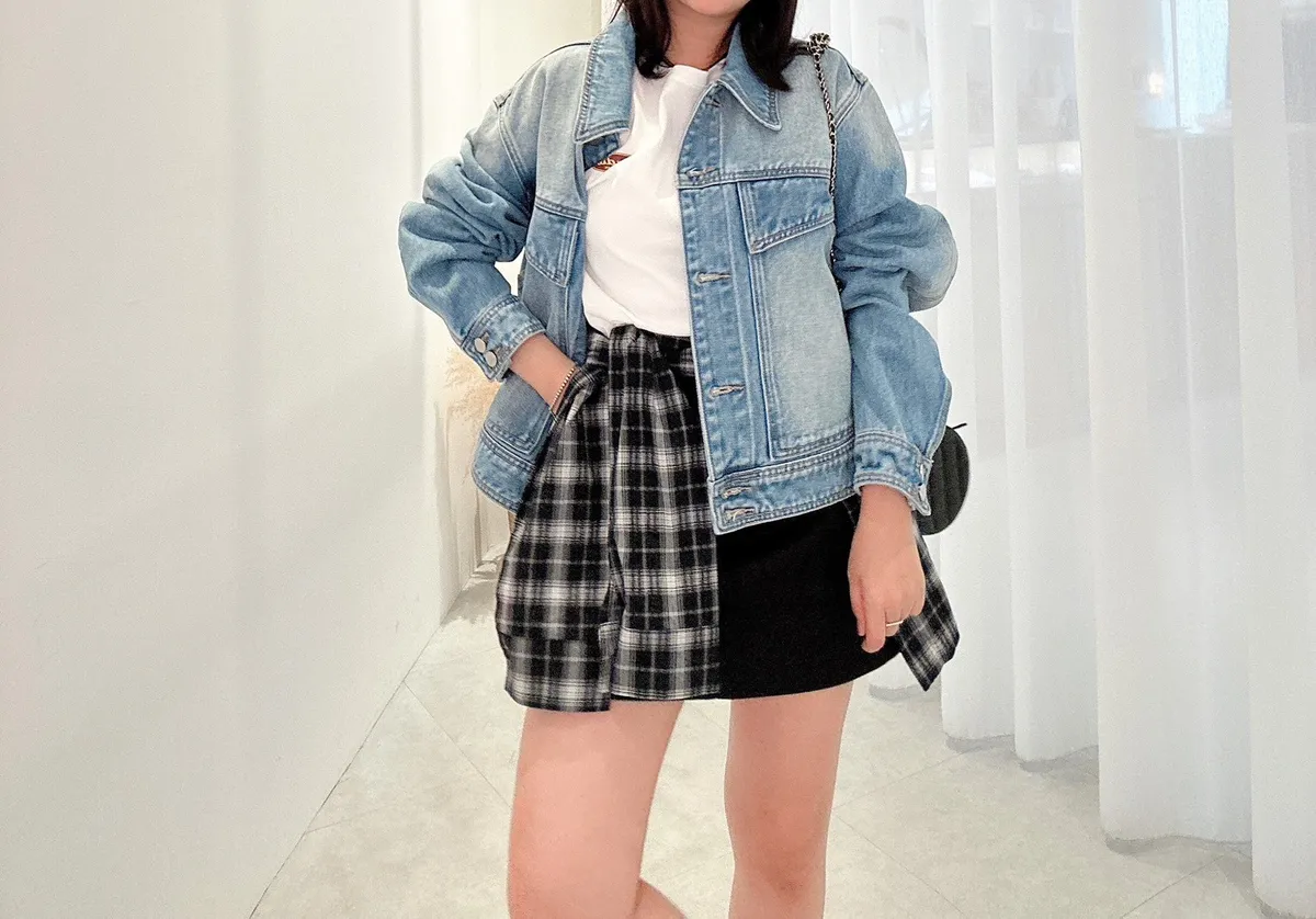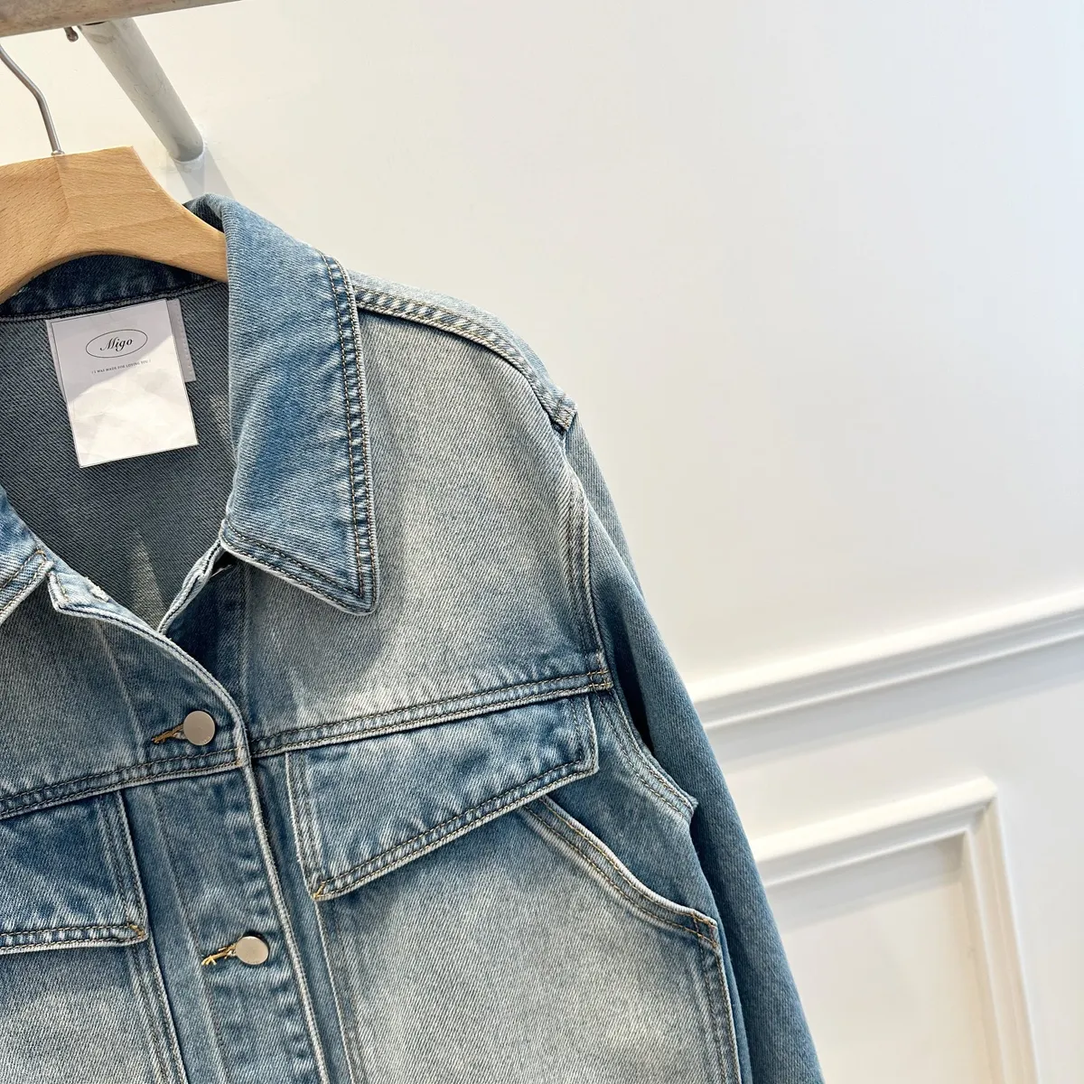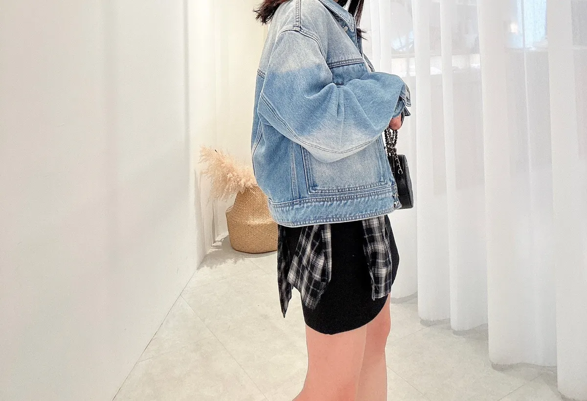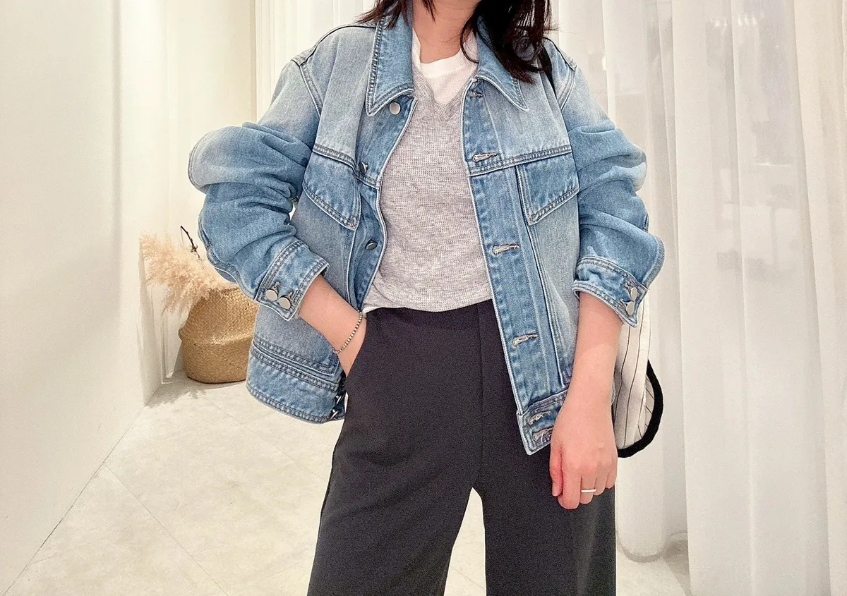質感斜口袋牛仔外