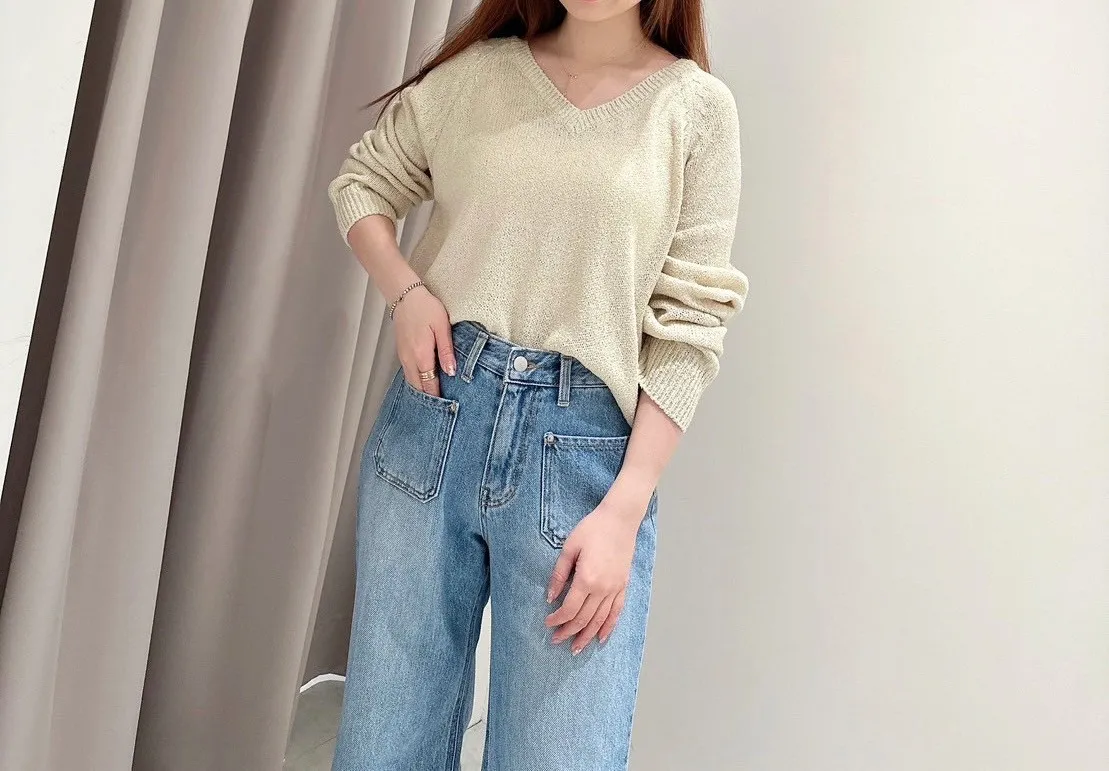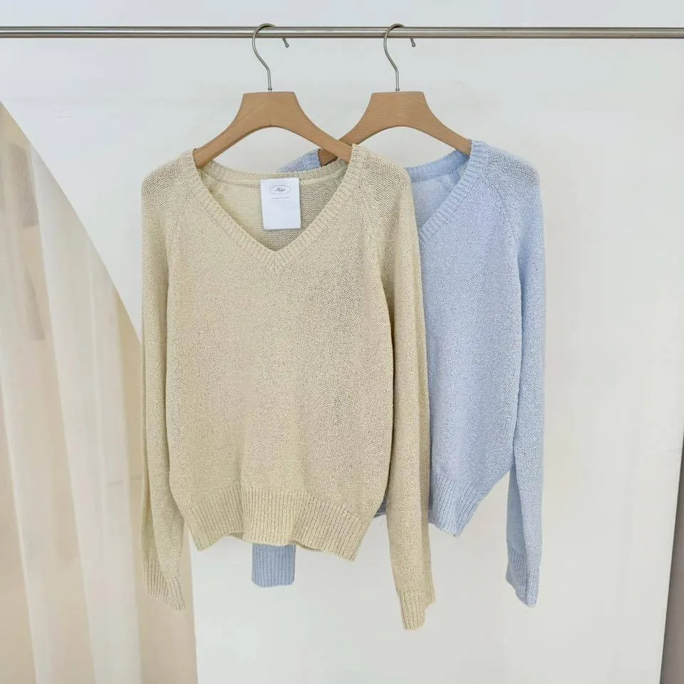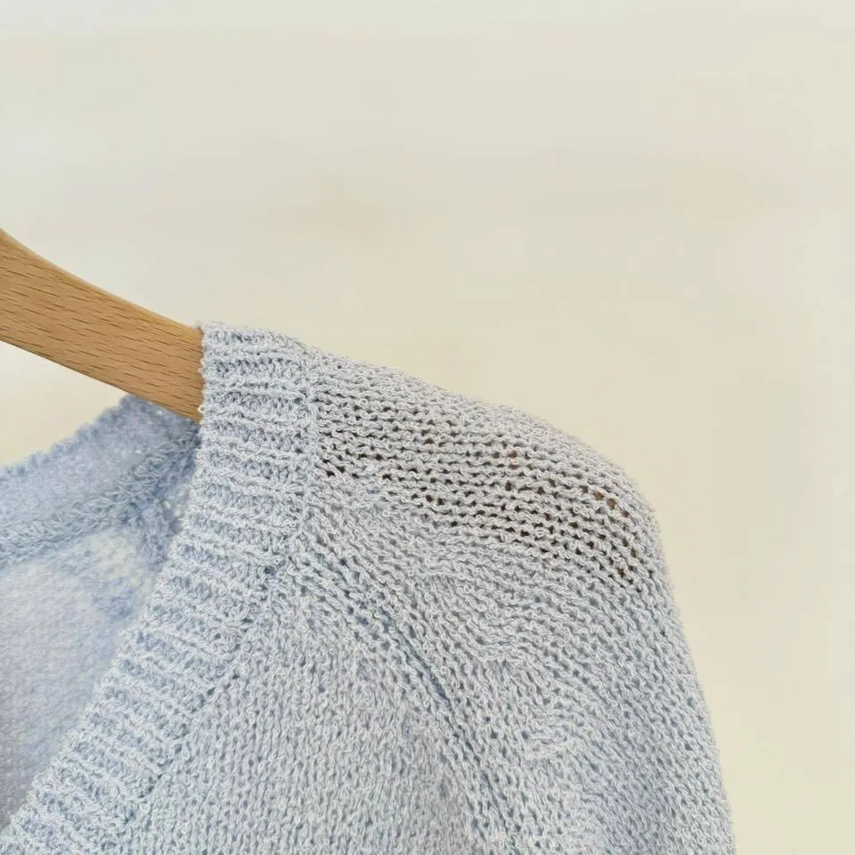 V領薄長涼織上衣