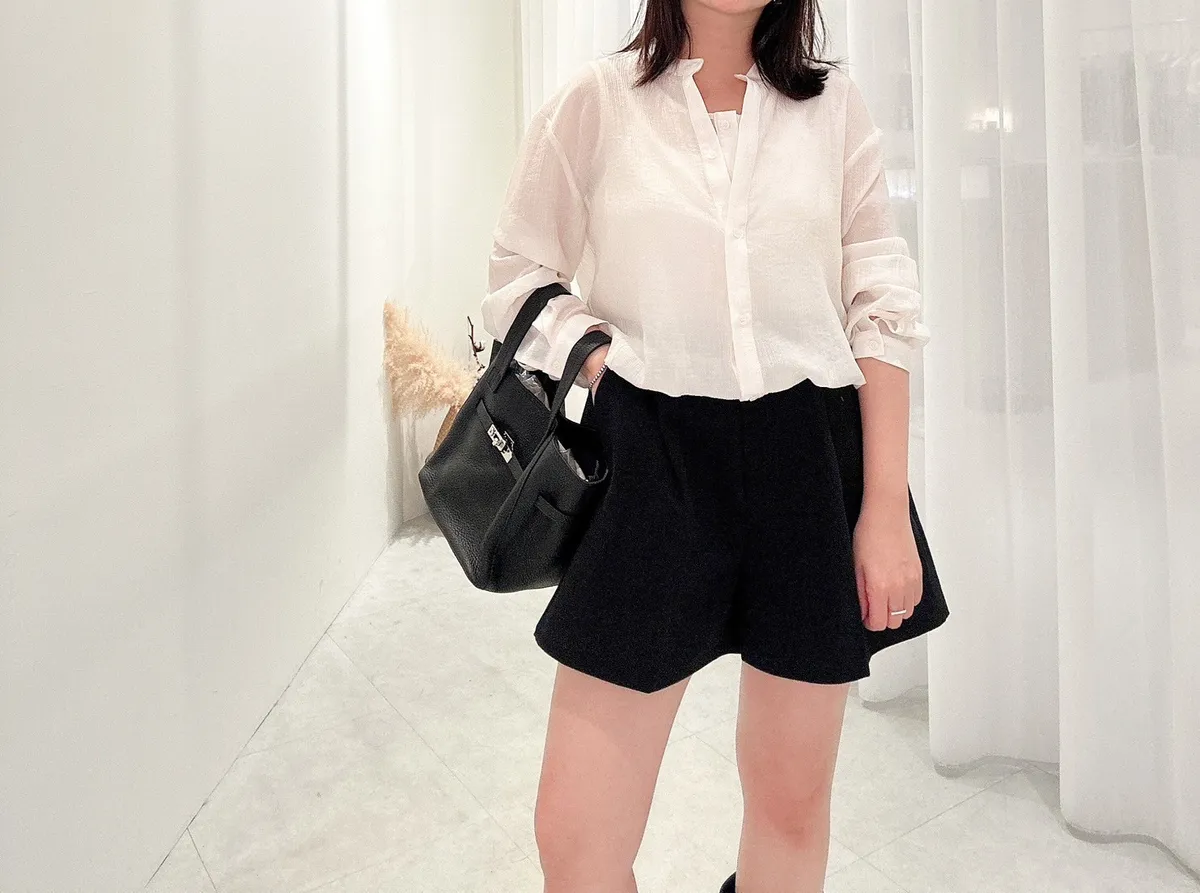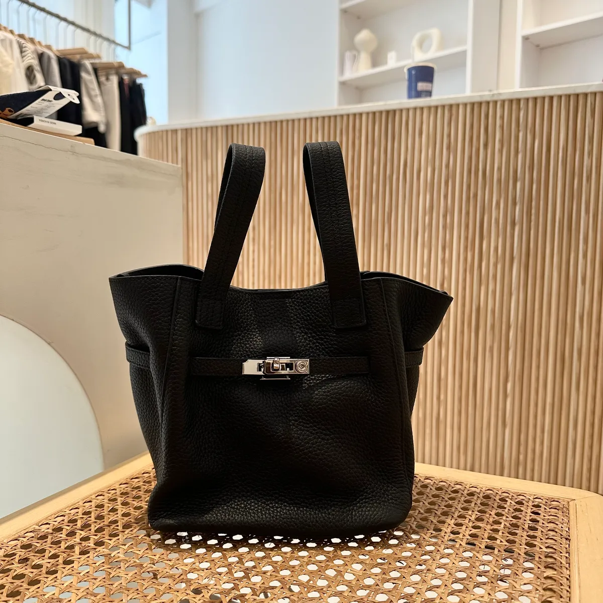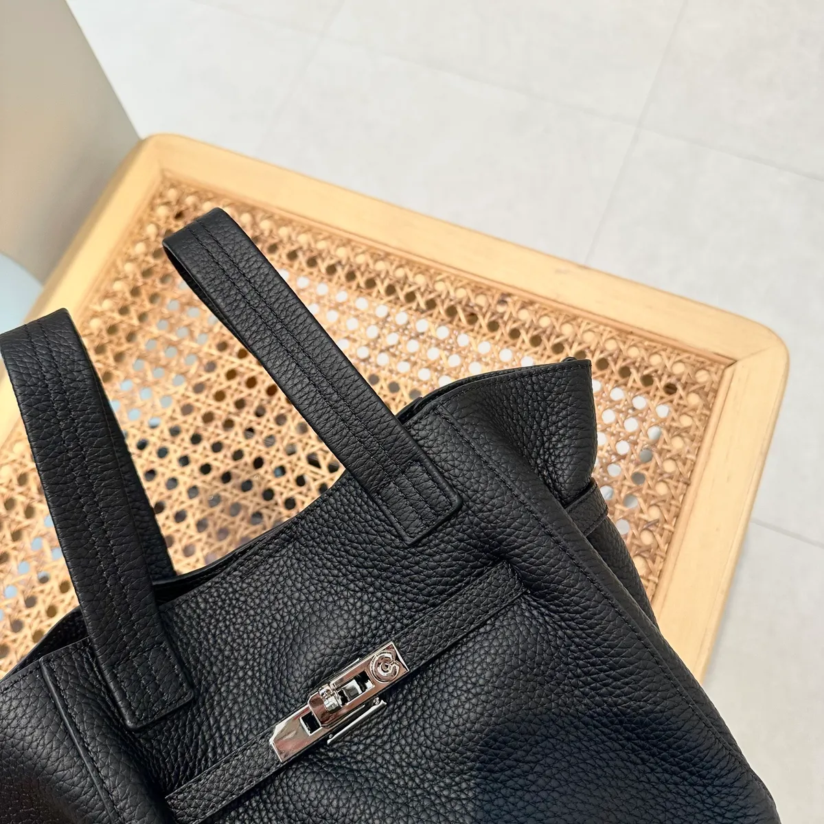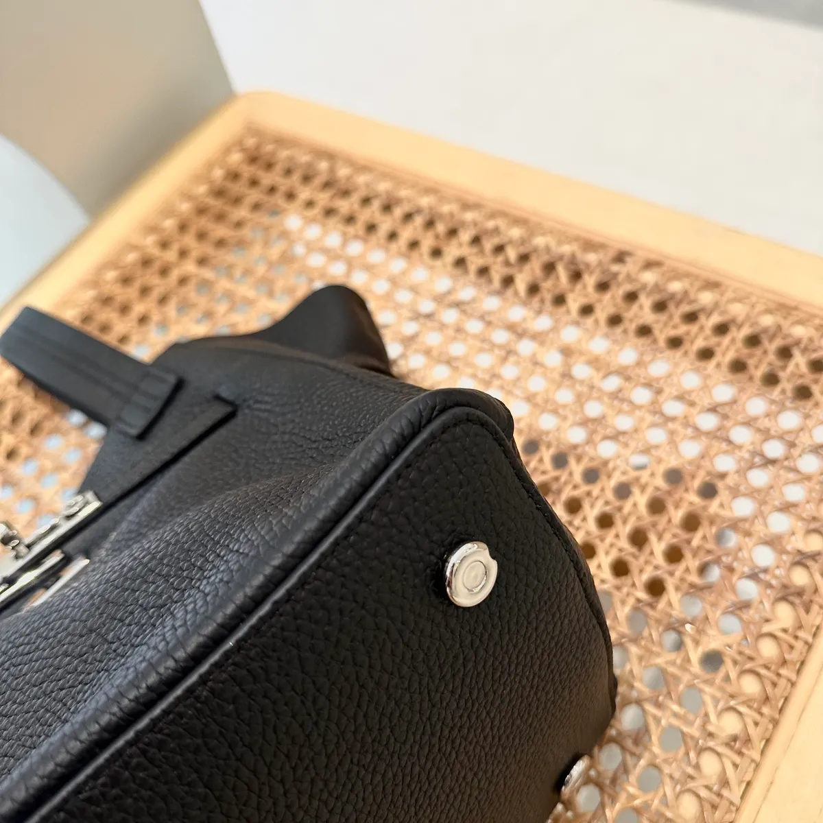 銀長釦真皮提把包
