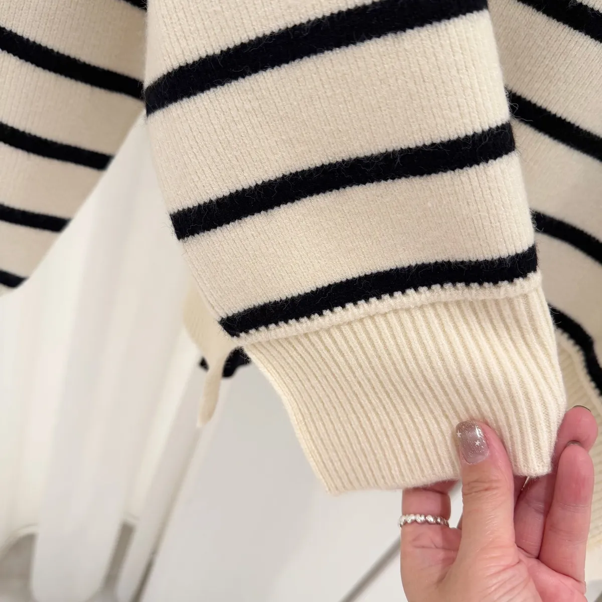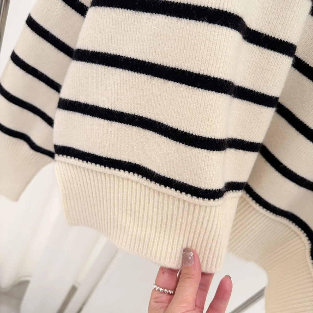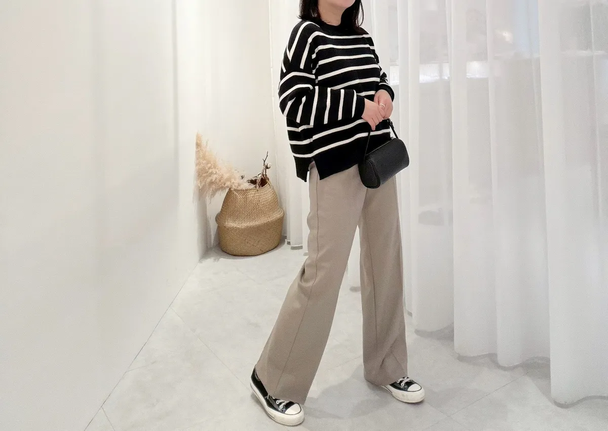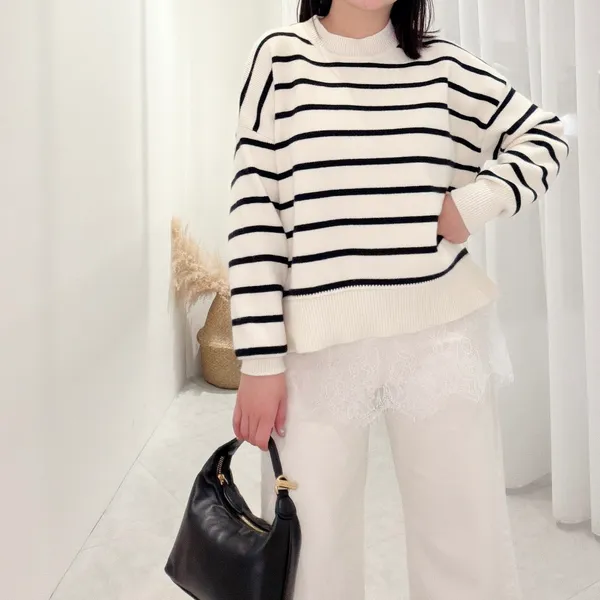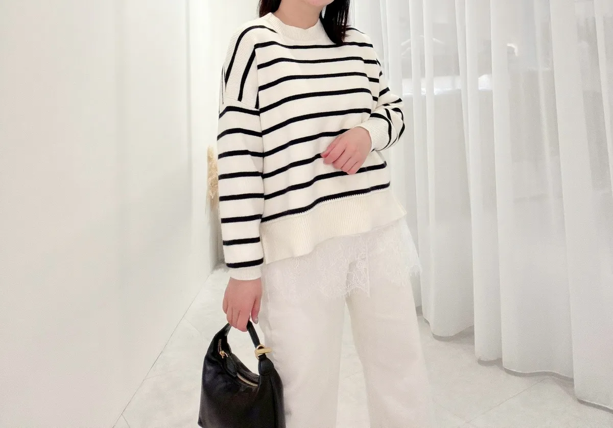 側岔條紋針織上衣