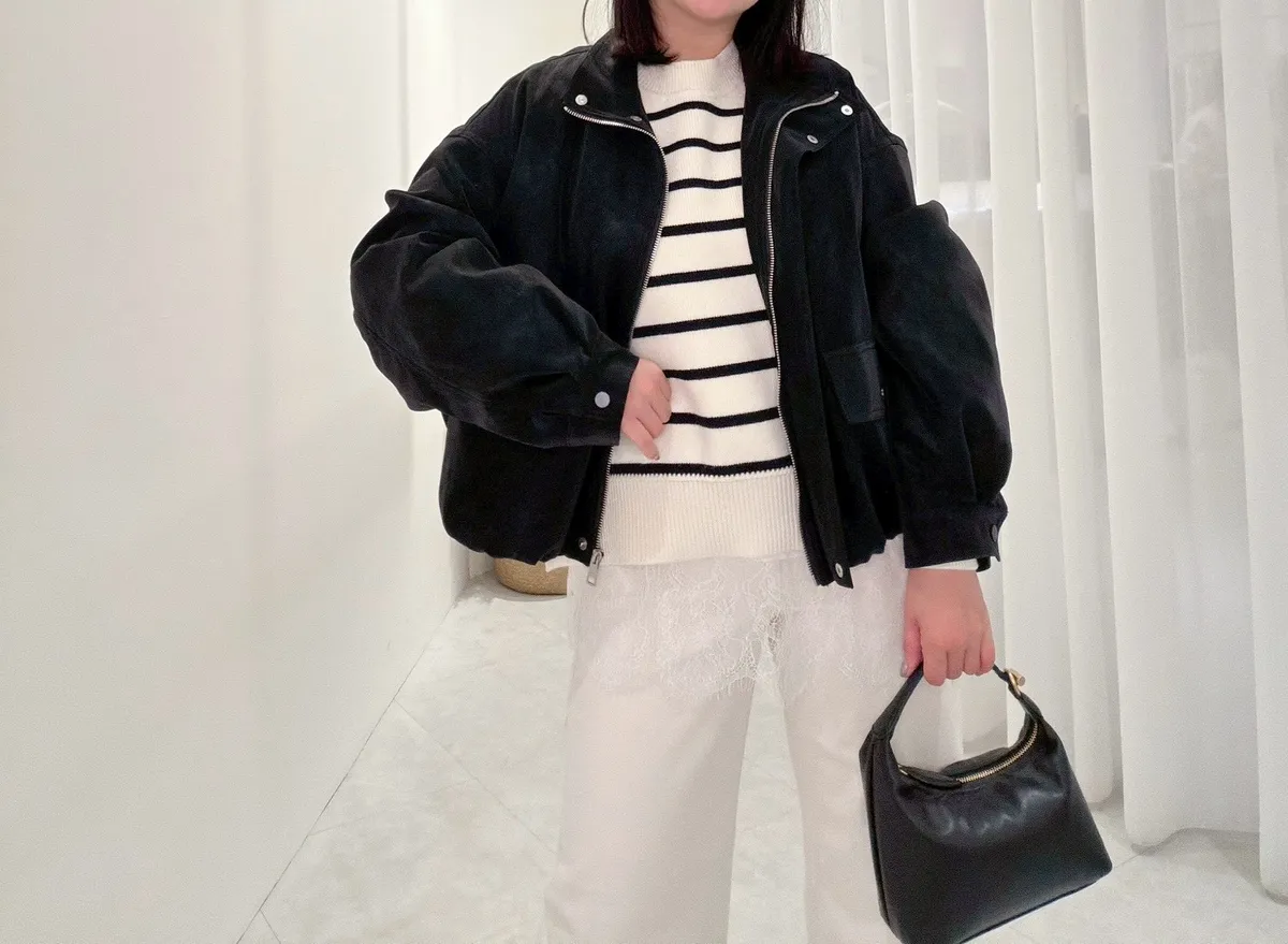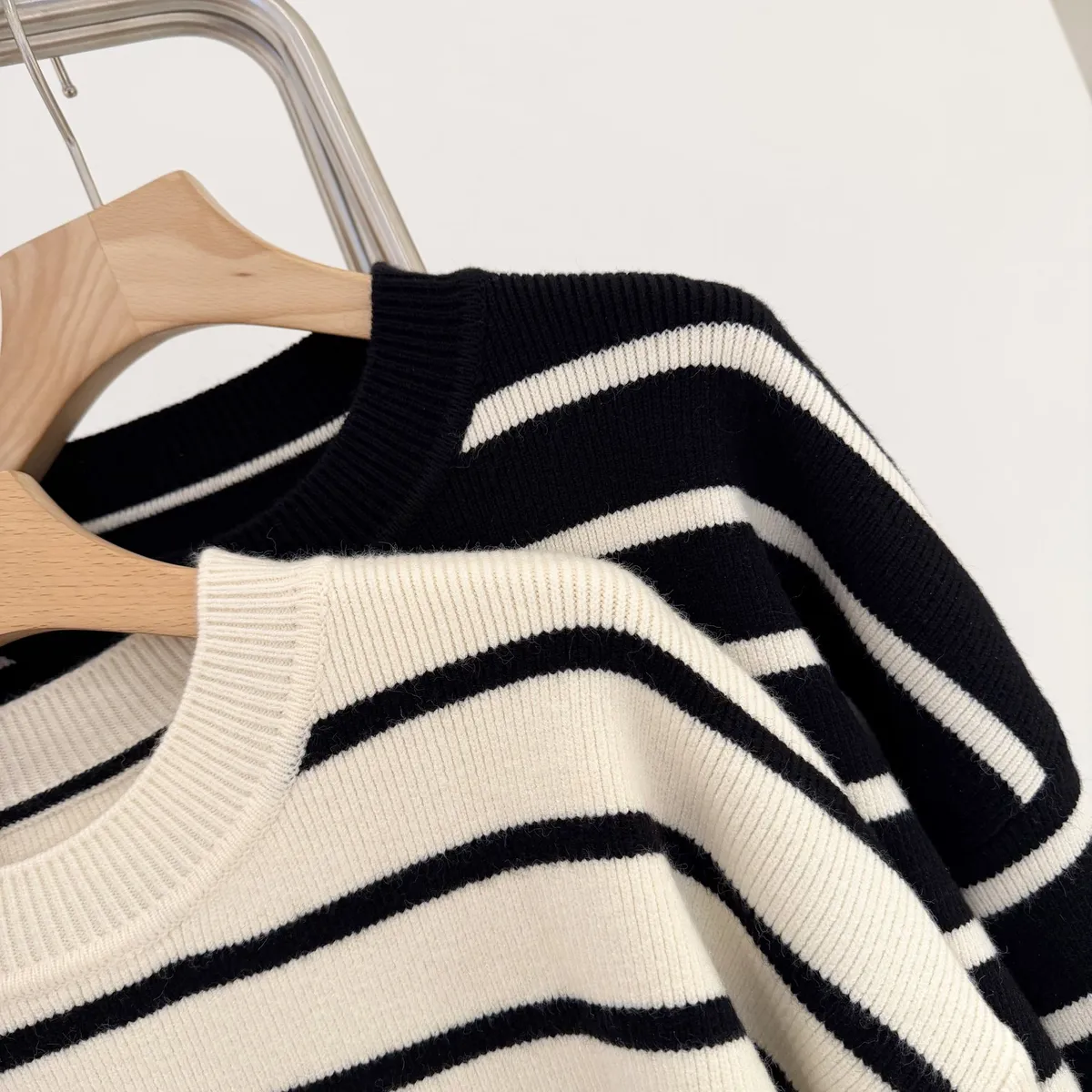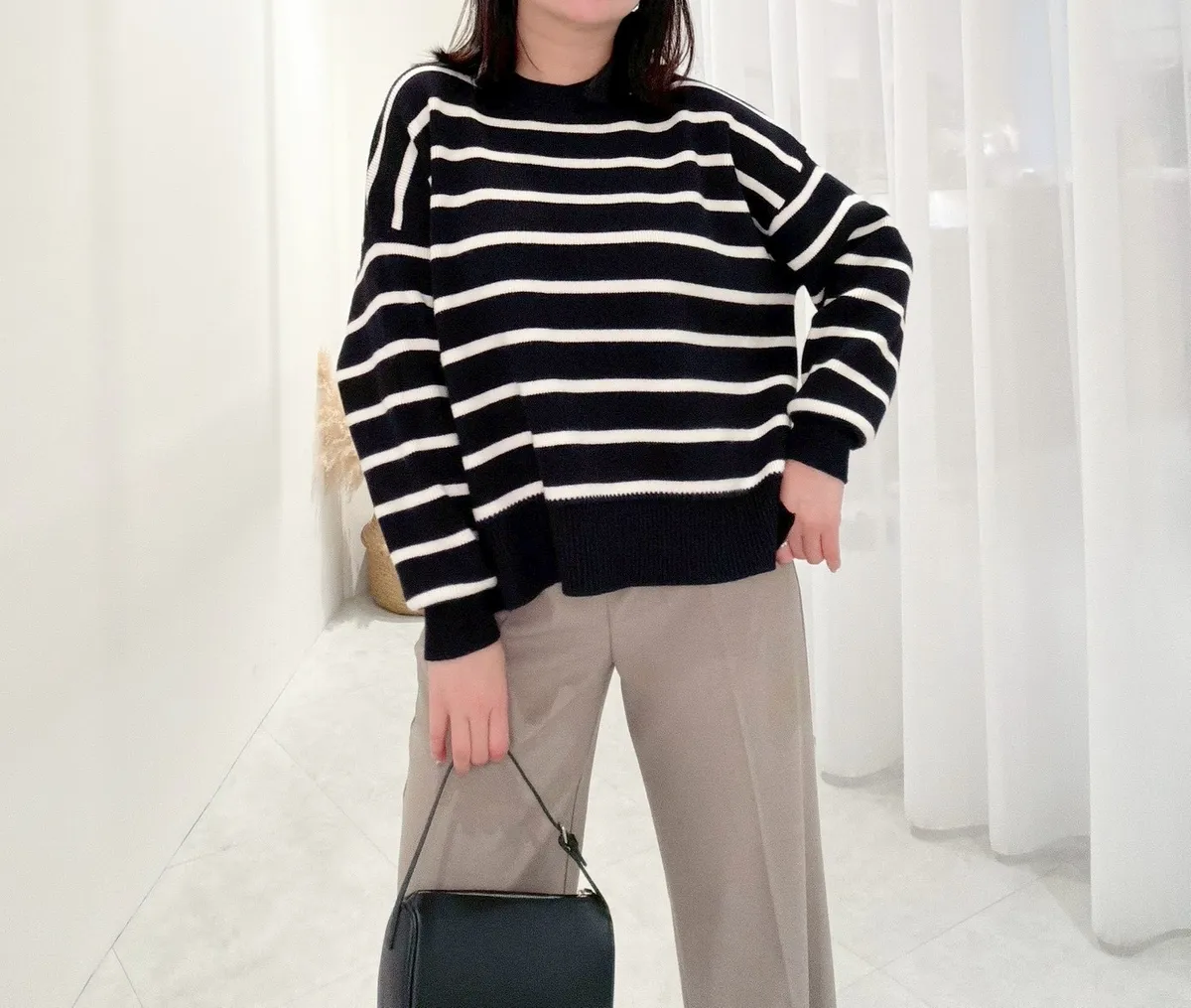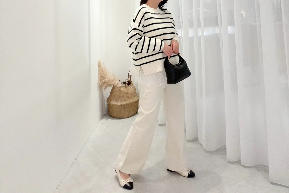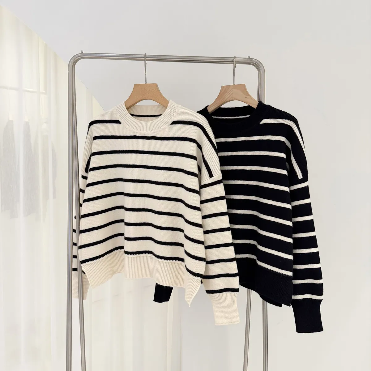 側岔條紋針織上衣